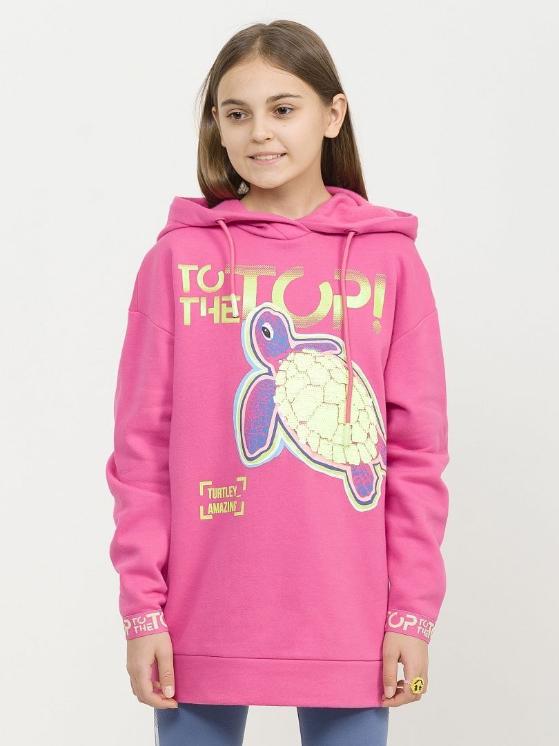 Состав: 100%полиэстер, вставка: 100%нейлон Худи для девочки с капюшоном. Модный детский свитшот свободного силуэта с длинным рукавом, удлиненный с регулировкой по низу шнуром со стопперами. Капюшон на молнии на флисовом подкладе, удобный накладной карман кенгуру для ручек, выполнены из курточной ткани. Это базовая вещь для детского гардероба. Красивая и яркая одежда для ребенка, практичная и удобная при надевании для родителей. Свитер оверсайз для детей из качественного полотна, мягкий теплый флис, подарит приятные тактильные ощущения, согреет в любую погоду не сковывая движения. Теперь одеваться будет в радость. Теплая кофта для девочек станет самой любимой. Можно надевать как верхняя одежда на осень или под другие вещи на зиму. Утепленный лонгслив подойдет для занятий спортом как спортивная одежда, для прогулок, для школы, а также для повседневной носки на каждый день. Удобная толстовка для подростка, это универсальная вещь и подарок для любого случая.