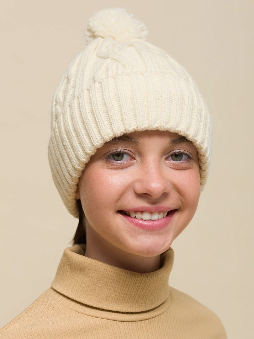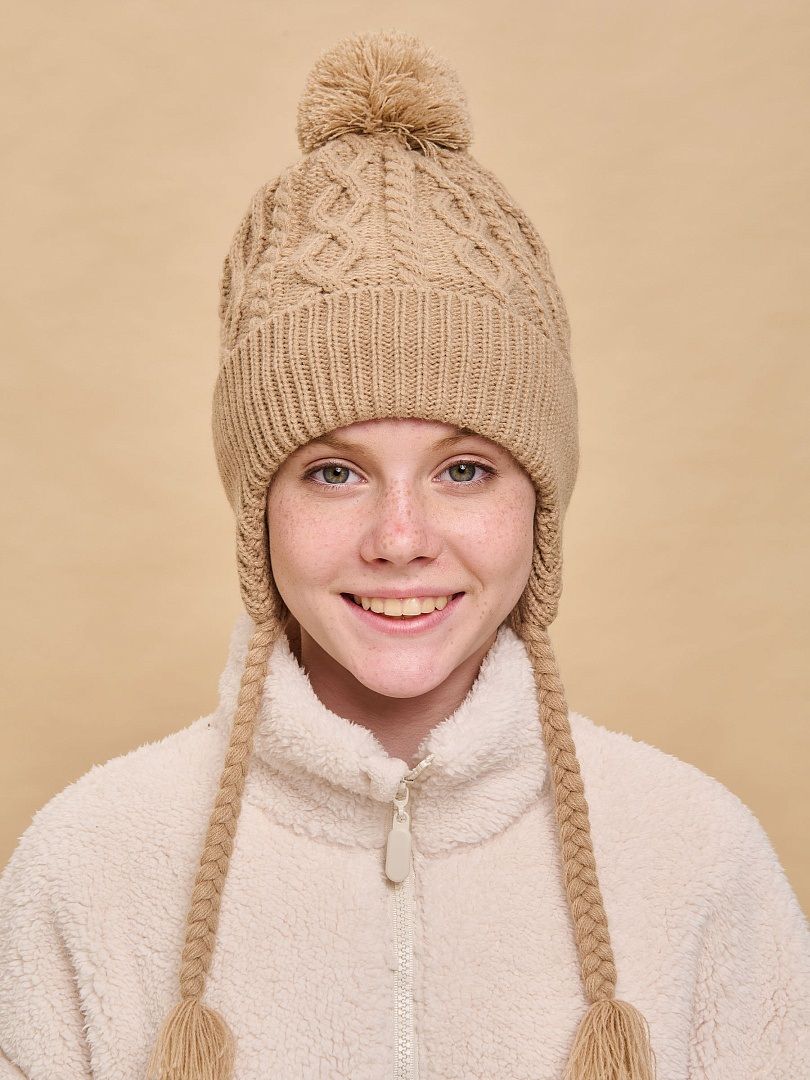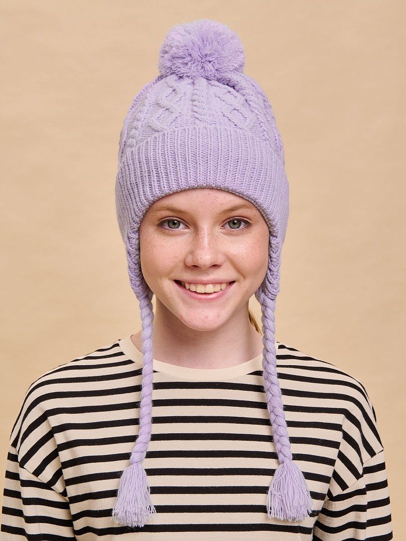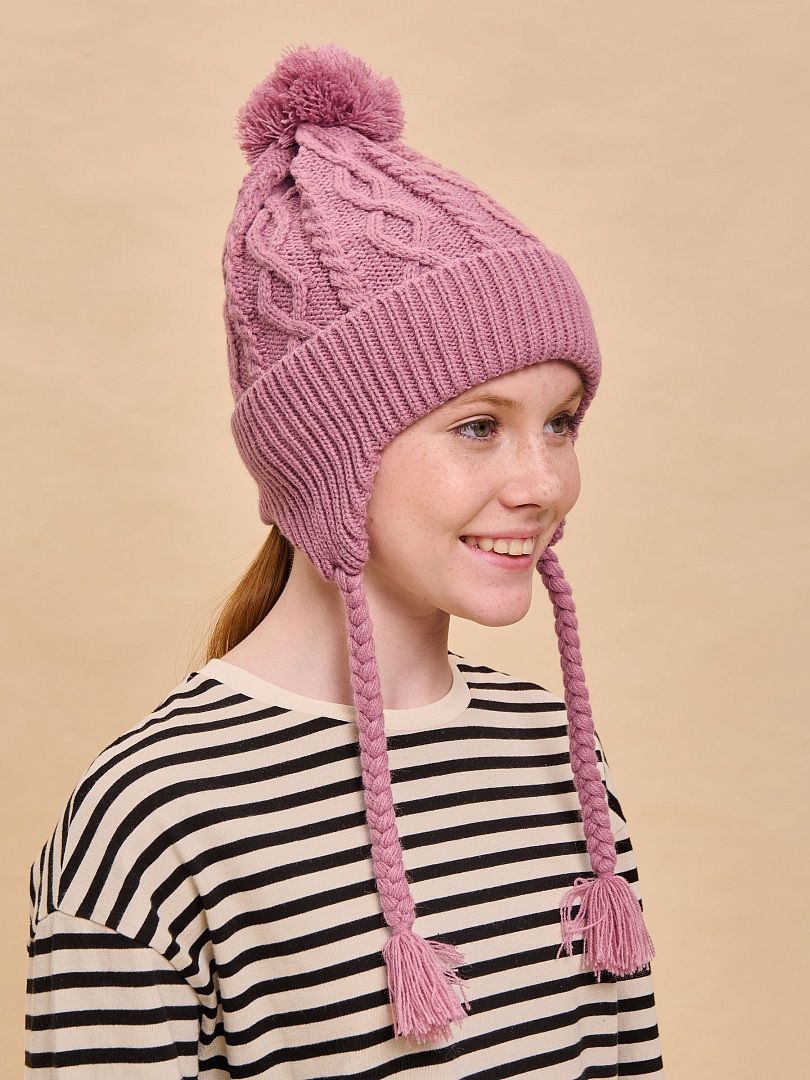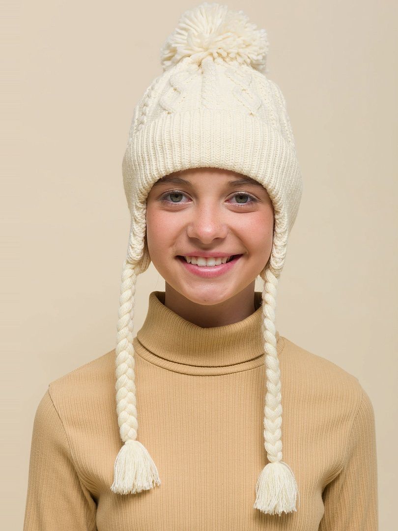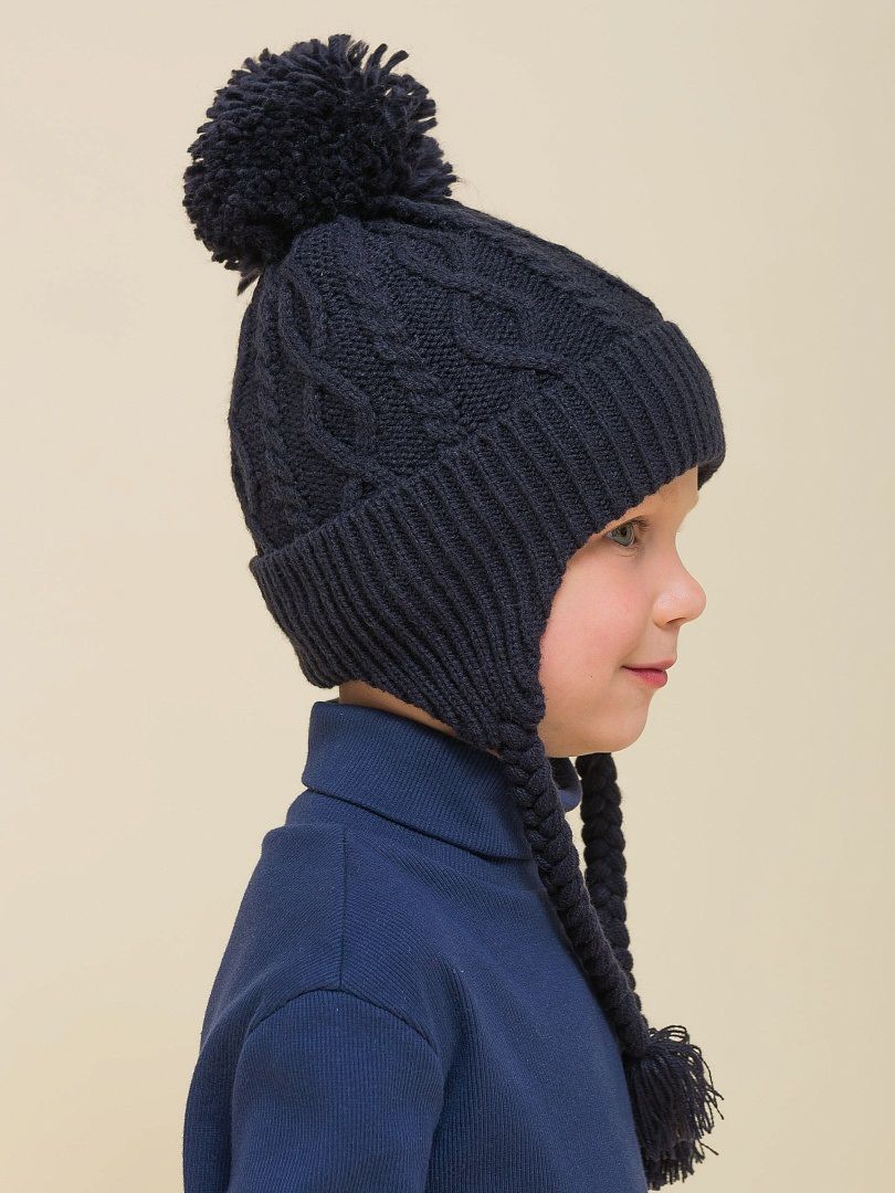 Состав: 100%акрил, подклад: 100%полиэстер Стильная и уютная детская шапка с помпоном. Нейтральный дизайн делает её подходящей и мальчикам, и девочкам. Модель с отворотом и цельновывязаными функциональными ушками с завязками выполнена из 100% акрила. Материал тёплый, приятный на ощупь и очень комфортный. Шапку легко стирать — она не растягивается, не мнётся и сохраняет первозданный вид надолго. Отличные терморегулирующие свойства акрила позволяют носить изделие в холодную погоду. Внутри флисовая подкладка. Она мягкая и обеспечивает дополнительную защиту от холода. Модель хорошо садится по голове ребёнка, плотно прилегает, не сползает. Основная вязка шапки — модные текстурные “косы”. Цельновывязаные ушки по бокам прикрывают уши ребёнка от холода и ветра. Декоративные завязки выполнены в виде косичек с кисточками — оригинально и стильно. Помпон выполнен из ниток в тон изделия. Эта модель станет отличным подарком для маленьких модников!