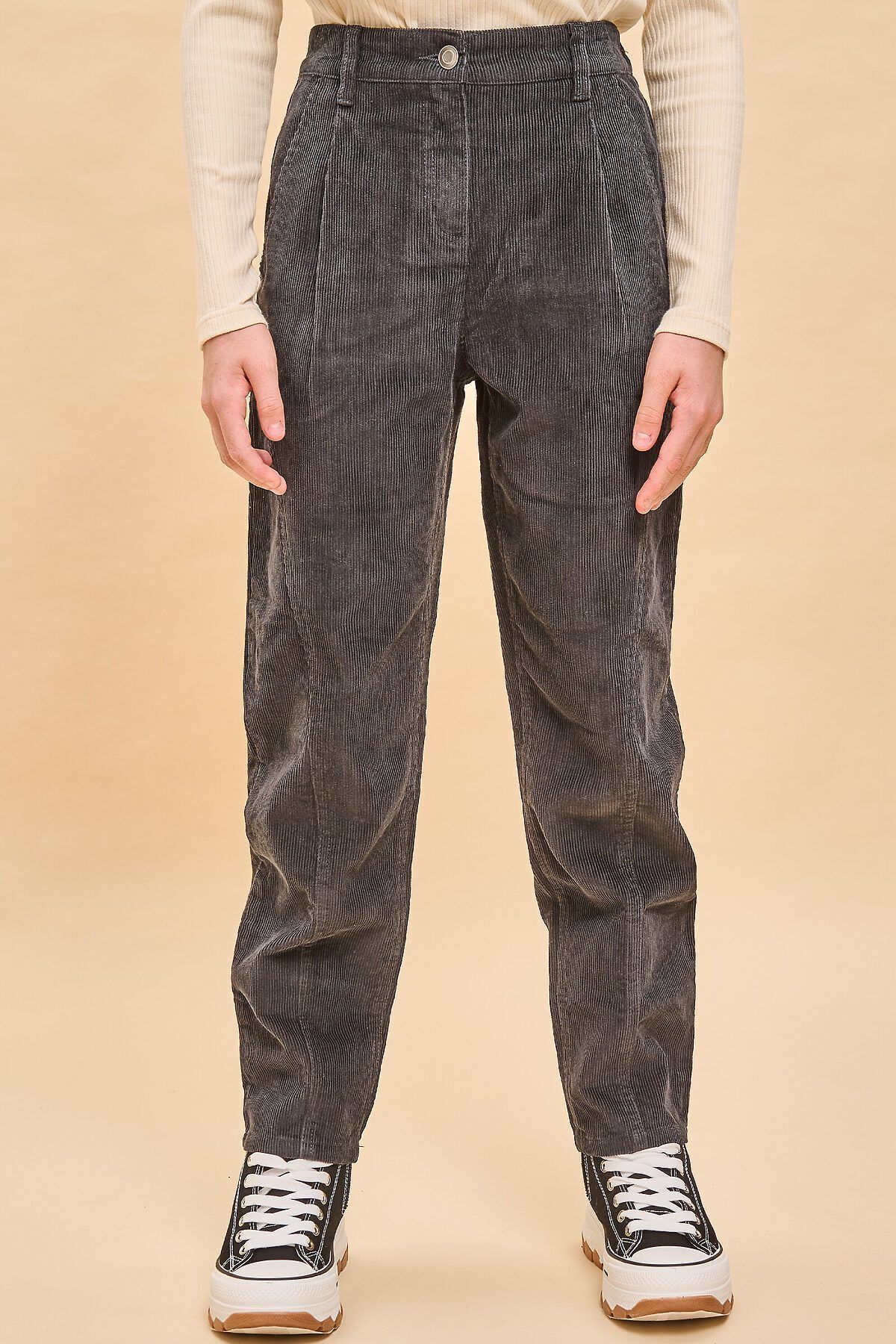 Состав: 100%хлопок Брюки вельветовые в рубчик для девочки. Брюки прямые модного широкого силуэта — не будут сковывать движений ребёнка и подарят комфорт. По переду удобные боковые карманы + маленький накладной боковой карман справа, на спинке кокетка и накладные карманы для мелочей. Спереди брюки украшают оригинальные декоративные членения, создающие эффект брюк рабочего, сбоку декоративная петля из основной ткани — трендовые, стильные детали. Классическая застёжка на молнию и пуговицу. В поясе со стороны спинки резинка, что обеспечивает идеальную посадку и прилегание. Также предусмотрена внутренняя регулировка ширины изделия по талии. Брюки однотонные, без принта. За ними легко ухаживать. В составе ткани 100% высококачественного хлопка — штаны мягкие и великолепно пропускают воздух, позволяя коже ребёнка дышать. Модель выполнена в актуальном тёмно-сером цвете. Серые брюки легко сочетать с различными джемперами, футболками, свитшотами, худи, куртками. Размерная линейка: 3 (98); 4 (104); 5 (110); 6 (116); 7 (122); 8 (128); 9 (134); 10 (140); 11 (146). Отличные брюки для девочек дошкольного и младшего школьного возраста, а также девочек-подростков. Брюки широкого кроя можно носить в детский сад, на прогулки, на отдых, а также дома. Изделие для круглогодичного применения: летом, осенью, зимой, весной и демисезон. Прекрасный подарок дочери, внучке или сестре на День рождения и любой другой праздник.