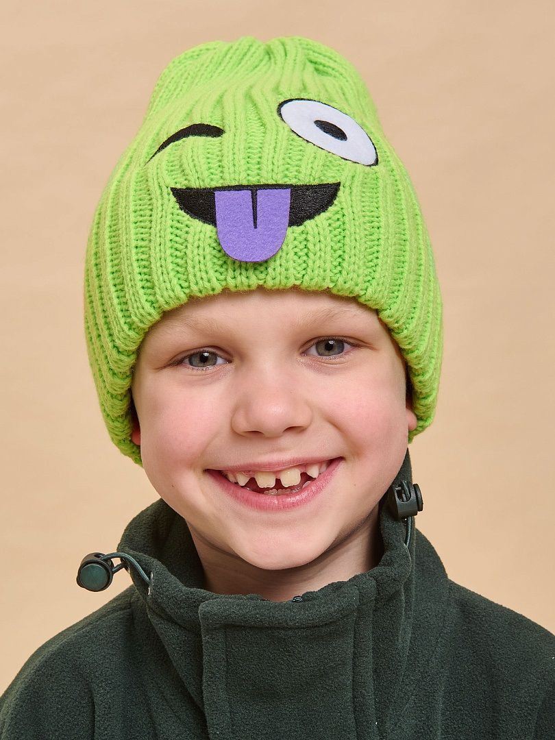 Состав: 100%акрил, подклад: 100%акрил Теплая детская шапка для мальчика. Вязанная шапка на подкладе из акрила, цвет и принт имитируют смайл для настроения парня, комфортно сидит на голове, надежно держится, но не передавливает по окружности, не сдавливает уши, не съезжает на глаза полностью защищая от холода и ветра. Демисезон, для осени, для зимы. Яркий и стильный головной убор для ребенка станет настоящим подарком для юных модников и зарядит хорошим настроением. Вы удивитесь, такая верхняя одежда для детей станет настоящей игрой, дети с удовольствием будут надевать ее сами. Гардероб ребенка не должен быть скучным. Модная зимняя утепленная шапочка для мальчиков, мягкая, в ней весело ходить в сад и в школу, на долгие прогулки. Качественный и приятный на ощупь материал подарит тактильное удовольствие при касании.