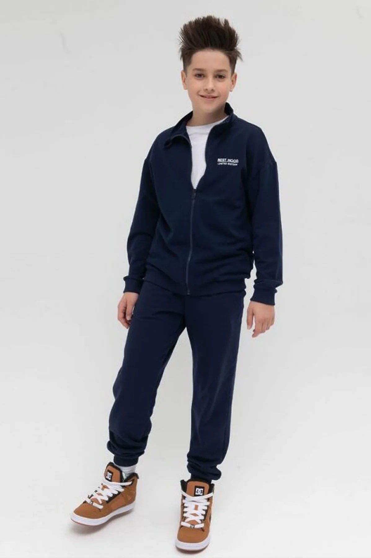 Состав: верх: 95%хлопок 5%эластан, низ: 95%хлопок 5%эластан Трикотажный спортивный костюм из эластичного футера для мальчика. Натуральный хлопок в составе позволяет телу дышать, ткань приятна на ощупь, не растягивается и почти не мнется. Воротник, манжеты рукавов и брюк из рибаны – держат форму и плотно прилегают. Тракторная молния у толстовки максимально прочная, не заедает. Лаконичный текстовый принт сбоку – изюминка костюма. Объем по линии талии регулируется внутренним шнуром – брюки не давят и не спадают. Боковые карманы для хранения важных мелочей. В костюме комфортно прыгать, бегать и заниматься любым спортом. Для школы и для спортивного повседневного стиля.